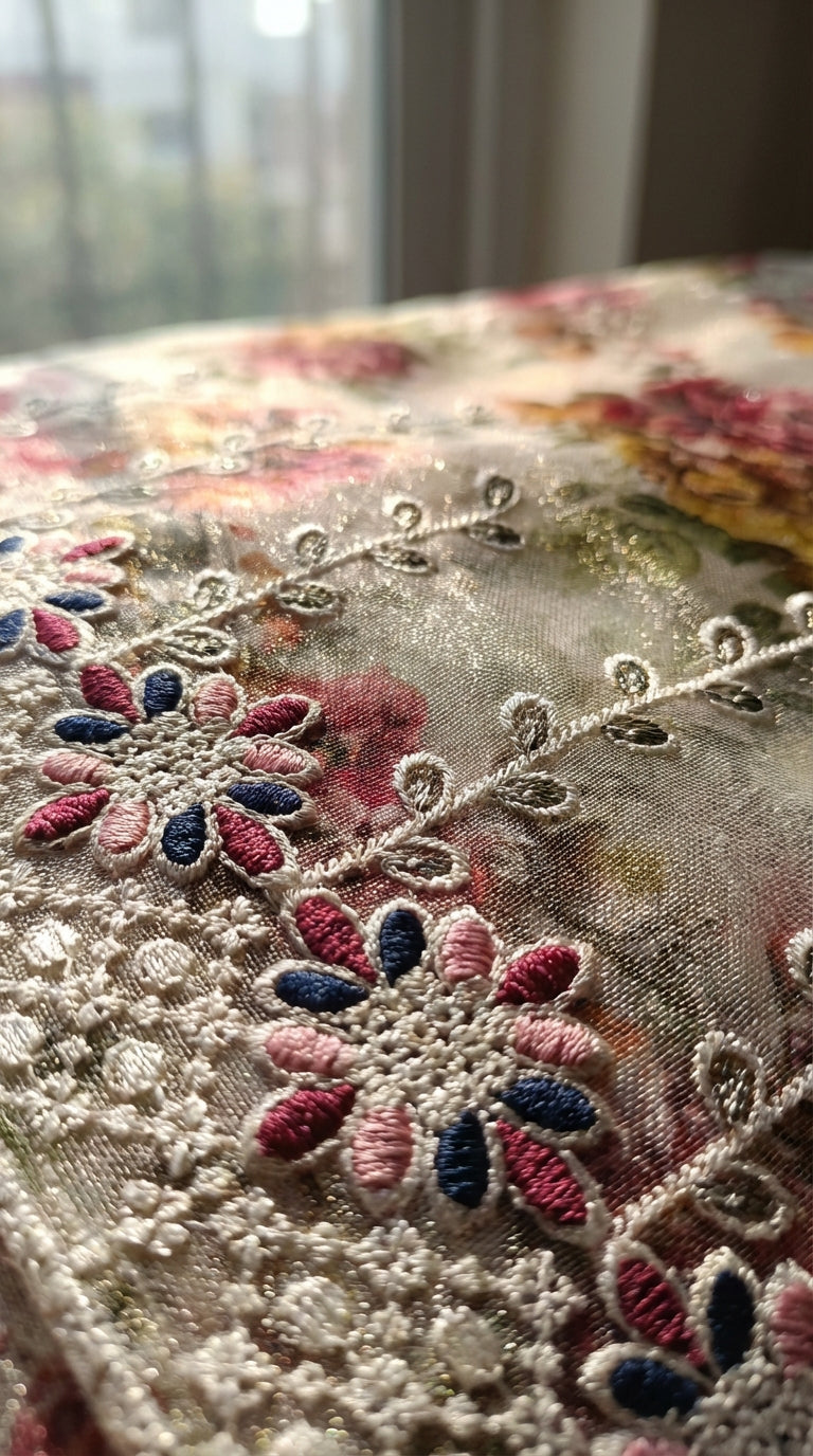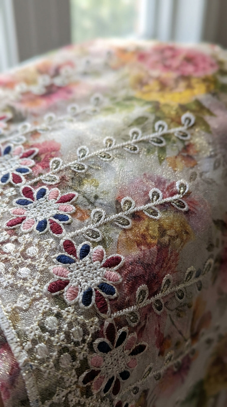 Shabnam from the Rangsaaz Festive Collection is designed on premium Lava Silk, featuring delicate 3mm multi embroidery with subtle zari detailing. The beautifully coordinated fancy zari dupatta enhances its graceful festive charm, making it an ideal choice for intimate celebrations and Eid evenings.